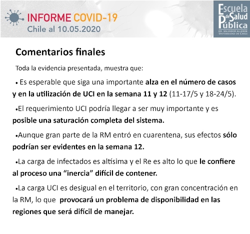 En el contexto de la pandemia por coronavirus (COVID-19), el profesor Mauricio Canals desde el inicio de la epidemia en Chile ha aportado información respecto proyecciones de la curva y demanda esperada en la atención de salud. Los reportes - inicialmente de circulación interna - han permitido seguir cercanamente el desarrollo de la epidemia en Chile y disponer de información relevante para su evaluación. Al reporte inicial, se han incorporado análisis propuestos por otros académicos y académicas de la Escuela y se ha complementado con datos a nivel regional.