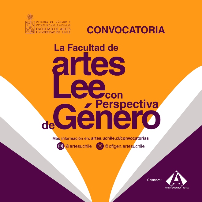 La Oficina de Género y Diversidades Sexuales de la Facultad de Artes, con la colaboración de la Dirección de Extensión y Comunicaciones, en el marco de la iniciativa: “La Facultad de Artes Lee con Perspectiva de Género”, convoca a la comunidad de la Facultad de Artes a enviar sus recomendaciones de libros escritos con perspectiva de género, para su publicación en las redes sociales (Instagram y Facebook) de la Facultad de Artes (@artesuchile) y la Oficina de Género y Diversidades Sexuales (@ofigen.artesuchile) de forma colaborativa, con el fin de difundir material de lectura que invite a profundizar en textos con perspectiva de género o sobre feminismos, y asimismo, inspire a quienes incursionan en el mundo de la escritura.