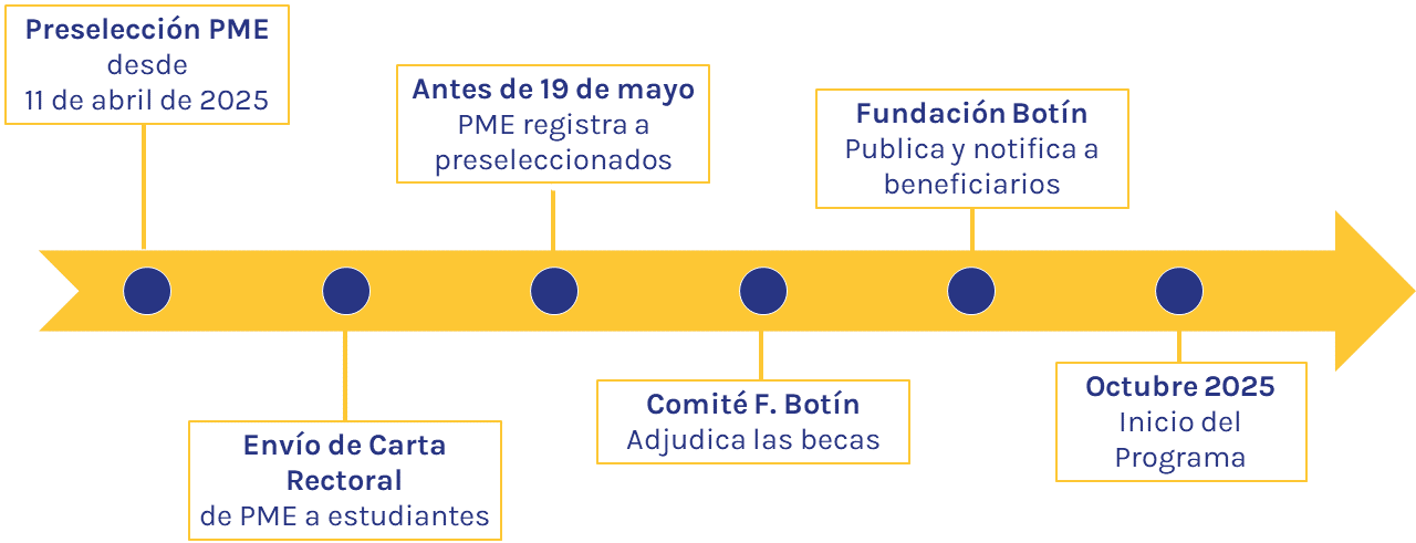 IMPORTANTE: Sólo las/os estudiantes preseleccionadas/os por el PME y el Dpto. de Pregrado serán avalados ante la Fundación Botín y podrán postular a la Beca.