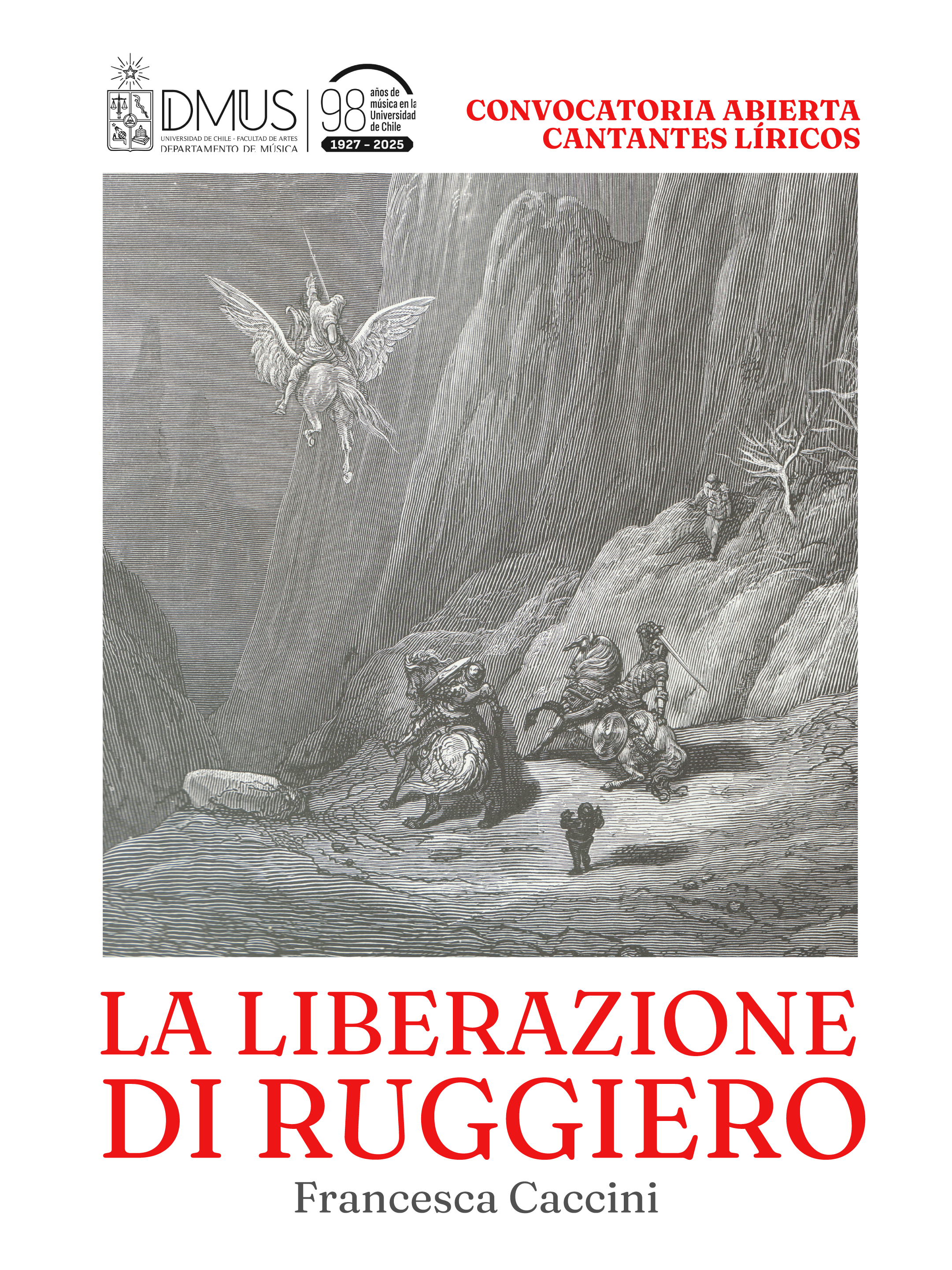 El Departamento de Música de la Universidad de Chile invita a la convocatoria para cantantes líricos que quieren ser parte del estreno en Latinoamérica de "La liberazione di Ruggiero", ópera de Francesca Caccini y que contará con la colaboración del colectivo Lírica Disidente y la Vicerrectoría de Extensión y Comunicaciones de la Universidad de Chile.