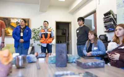 Durante la jornada del sábado 5 de abril, el Departamento de Ingeniería de Minas abrió las puertas de sus instalaciones para presentar sus Laboratorios de Pirometalurgia y de Caracterización Avanzada Minero/Metalúrgica, a cargo del Director del DIMin, Prof. Leandro Voisin; Laboratorio de Sustentabilidad, a cargo de la Jefa Docente, Prof. Andreina García y Laboratorio de Innovación para la Minería, a cargo del Prof. Gonzalo Montes, espacios donde se desarrollan investigaciones clave para la industria minera nacional e internacional.