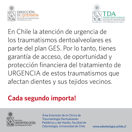 En respuesta a la contingencia, el equipo de la Clínica de Traumatología Dentoalveolar Pediátrica y del Adulto, en colaboración con la Dirección de Extensión y la Dirección de Comunicaciones de la Facultad de Odontología de la Universidad de Chile, elaboró una Campaña de difusión de medidas a realizar en caso de un golpe en la boca.