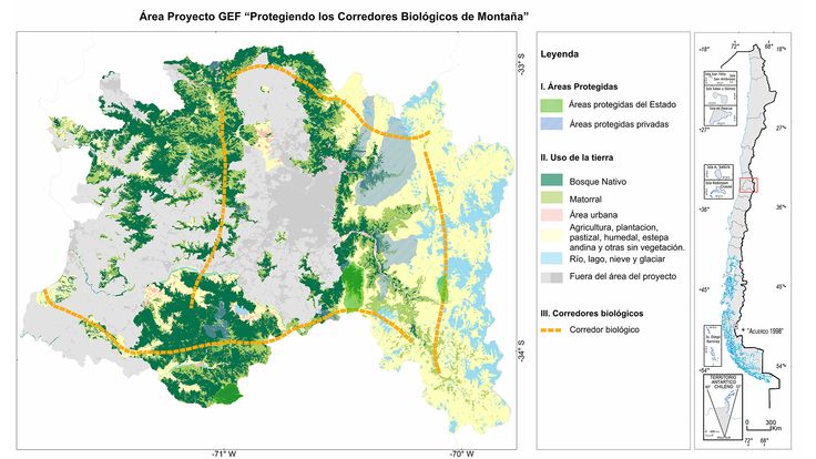 Asimismo, Alexis Vásquez señala que existen en la zona corredores ecológicos en buen estado que permiten el flujo de energía y materiales tales como agua o el desplazamiento de animales como pumas, zorros o roedores, que sólo requieren algunas acciones de preservación pero otros corredores necesitan ser restaurados y asegurar la conectividad, por ejemplo, construyendo “pasarelas verdes o puentes salvajes creados especial y exclusivamente para que puedan transitar los animales, como los que ya se han creado en Europa y Estados Unidos. Esto es importante ya que los mayores esfuerzos han sido para mantener grandes áreas protegidas, pero éstas al final se vuelven islas. Por largo tiempo pensamos que eso era suficiente, pero la evidencia científica nos indica que la conservación debe hacerse en redes integradas de áreas protegidas y corredores”.