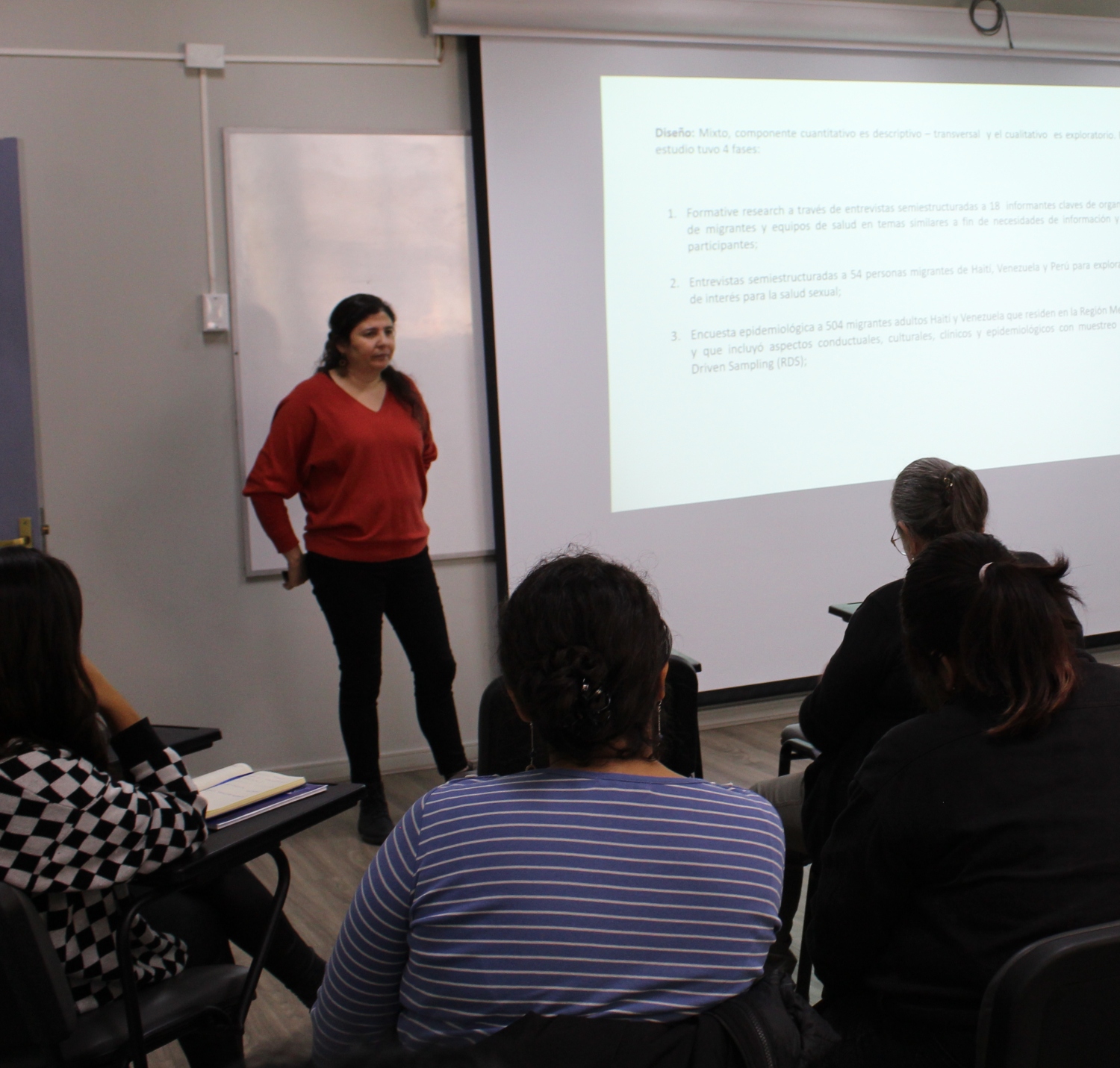 El grupo encabezado por la profesora de la Escuela de Salud Pública, Julieta Belmar, se compuso por; Valeria Stuardo como investigadora alterna; Laia Ferrer; Mauricio Fuentes; Claudia Cortés; Kenny Low; Jennifer Toller Erausquin; Loreto Pantoja; Anne Reevka y Nosika Janvier, tuvo como principal hallazgo, la necesidad de que los equipos sanitarios que abordan consultas sobre salud sexual integren la dimensión de la diversidad de la población migrante que condiciona sus prácticas, contextos de vulnerabilidad y barreras de acceso al sistema, con el fin de enriquecer sus prestaciones.