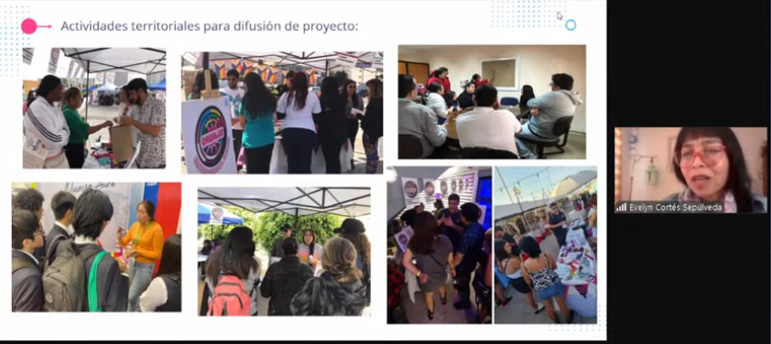 Desde Santiago, Débora Solís, directora ejecutiva de APROFA, compartió el trabajo desarrollado en dispositivos “intramuro” en contextos urbanos, destacando la trayectoria de la organización en derechos sexuales y reproductivos. Por su parte, desde Antofagasta, Evelyn Cortés, trabajadora social y presidenta del Centro Cultural Crealuz, presentó el trabajo realizado en actividades “extramuro” de acercamiento comunitario. Ambas participaron también como parte del equipo técnico comunitario del proyecto.