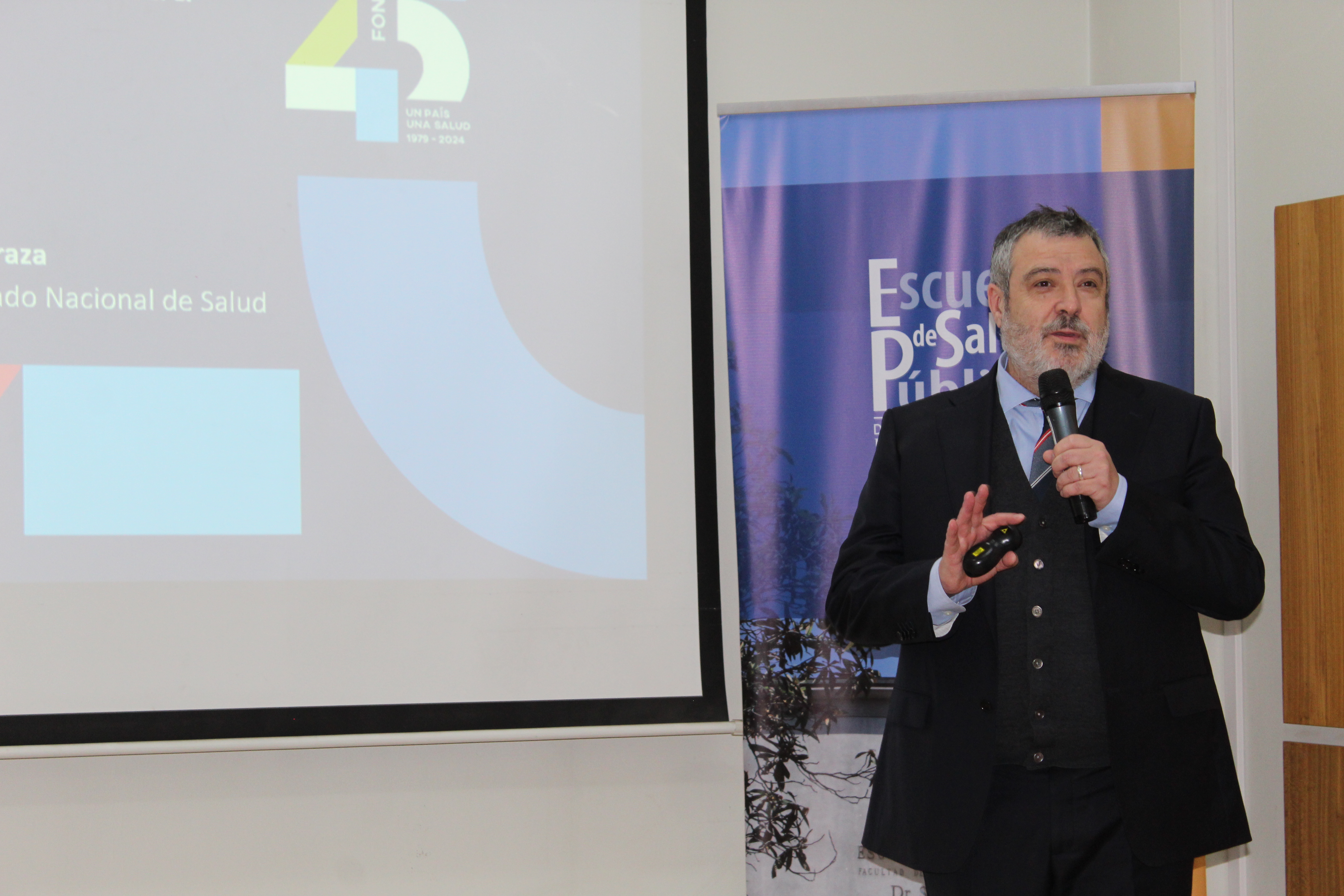 El profesor Marco Antonio Núñez, coordinador del curso, cerró la jornada agradeciendo al expositor: “Queremos agradecer tu presencia en la Escuela de Salud Pública de la Universidad de Chile. Hoy FONASA cumple un rol modulador del financiamiento con cada vez mayor influencia, y tu presentación nos ha permitido comprender mejor los desafíos y oportunidades que esto implica para el futuro del sistema de salud chileno”.