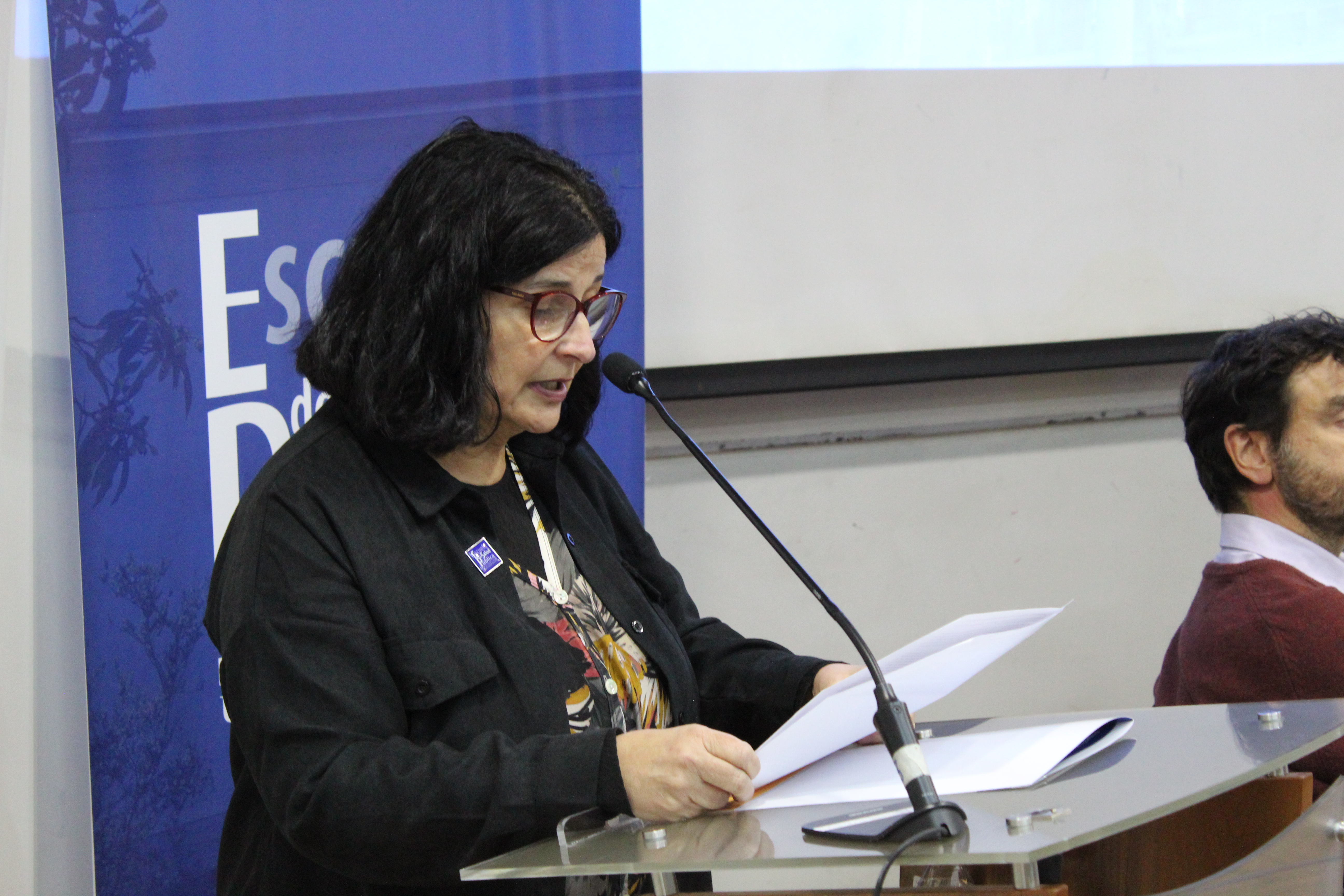 Por su parte, la directora de la Escuela de Salud Pública, Dra. Lorena Rodríguez Osiac, presentó el documento institucional “La Escuela de Salud Pública piensa las políticas públicas para la salud de Chile”. Explicó que este texto fue elaborado colectivamente como parte del Plan de Desarrollo Institucional (PDU 2025-2030) y tiene como propósito ofrecer principios y propuestas al debate nacional. “La salud, para nuestra Escuela, es un bien común y el producto histórico de una construcción colectiva, atravesada por las condiciones sociales, económicas y políticas que determinan la vida cotidiana de las personas”, señaló.