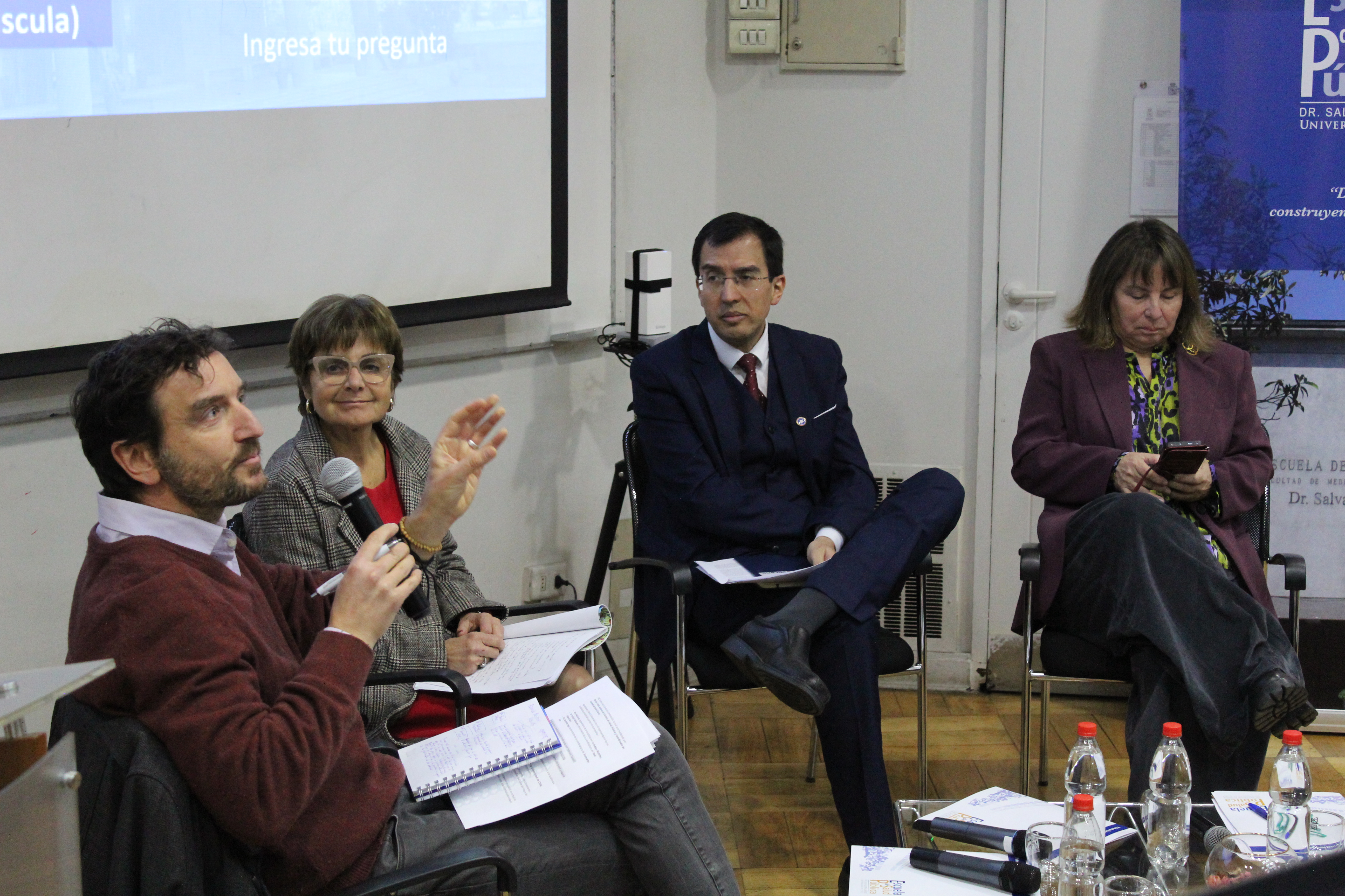 El vicedecano de la Facultad de Medicina, Dr. Juan Pablo Torres, abrió la jornada destacando el valor de la conversación plural en torno a la salud: “Nuestra capacidad de diálogo, de compartir opiniones y propuestas distintas, es la forma en que construimos país. Lo importante es que las políticas de salud apunten al bienestar de las personas”.