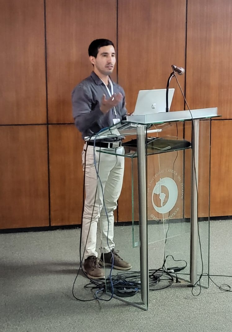 Respecto de los trabajos presentados, Flores detalló que tanto ella como el estudiante Cristian Flores contribuyeron con investigaciones vinculadas al proyecto de datos y pueblos originarios, financiado por un fondo interno de la Escuela. “Presenté con una síntesis de los resultados cuantitativos del proyecto de datos de pueblos originarios y Cristian expuso un trabajo relativo a la inmunización entre pueblos originarios y población general en primera infancia”. Agregó que su segunda exposición fue derivada de su tesis doctoral y que correspondió a “la evaluación de estrategias de muestreo en redes para vigilancia epidemiológica de enfermedades respiratorias”. Finalmente, destacó que Cristian presentó “un avance de su tesis de magíster en bioestadística, que consiste en la evaluación de diferentes métodos estadísticos para la estimación de la incidencia poblacional de cáncer gástrico”.
