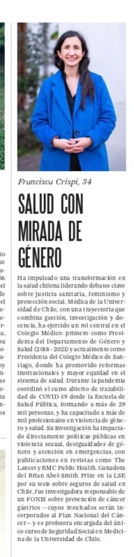 Ha impulsado una transformación en la salud chilena liderando debates clave sobre justicia sanitaria, feminismo y protección social.