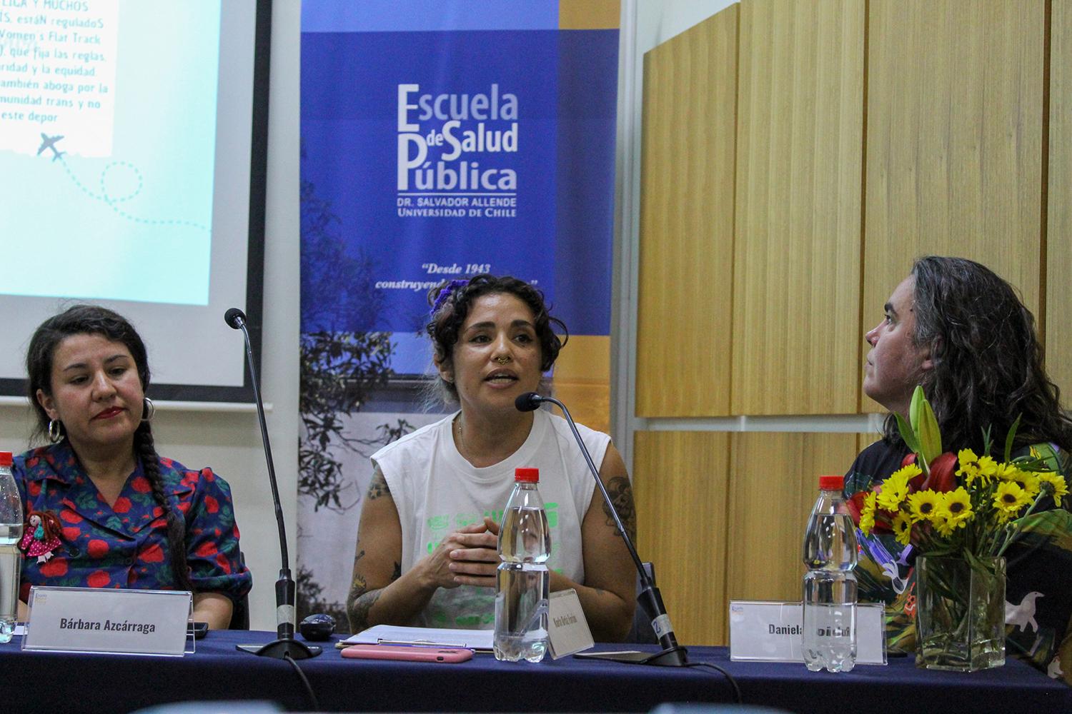 A continuación, la presidenta de la liga de patinaje Metropolitan Roller Derby, Karla Ortiz Farías, presentó “Metropolitan Roller Derby. Una experiencia de espacio seguro en la ciudad”. En la instancia, Ortiz explicó cómo este deporte se convirtió en un espacio de protección para las y los deportistas que lo practican: “Personas que quizás crecieron sintiendo que su cuerpo ocupaba demasiado espacio o muy poco espacio, encuentran en el Roller Derby el valor de ella y no el cuestionamiento. Por esto, el Roller Derby en general se define, no deportiva, pero sí culturalmente, como un espacio seguro”.
