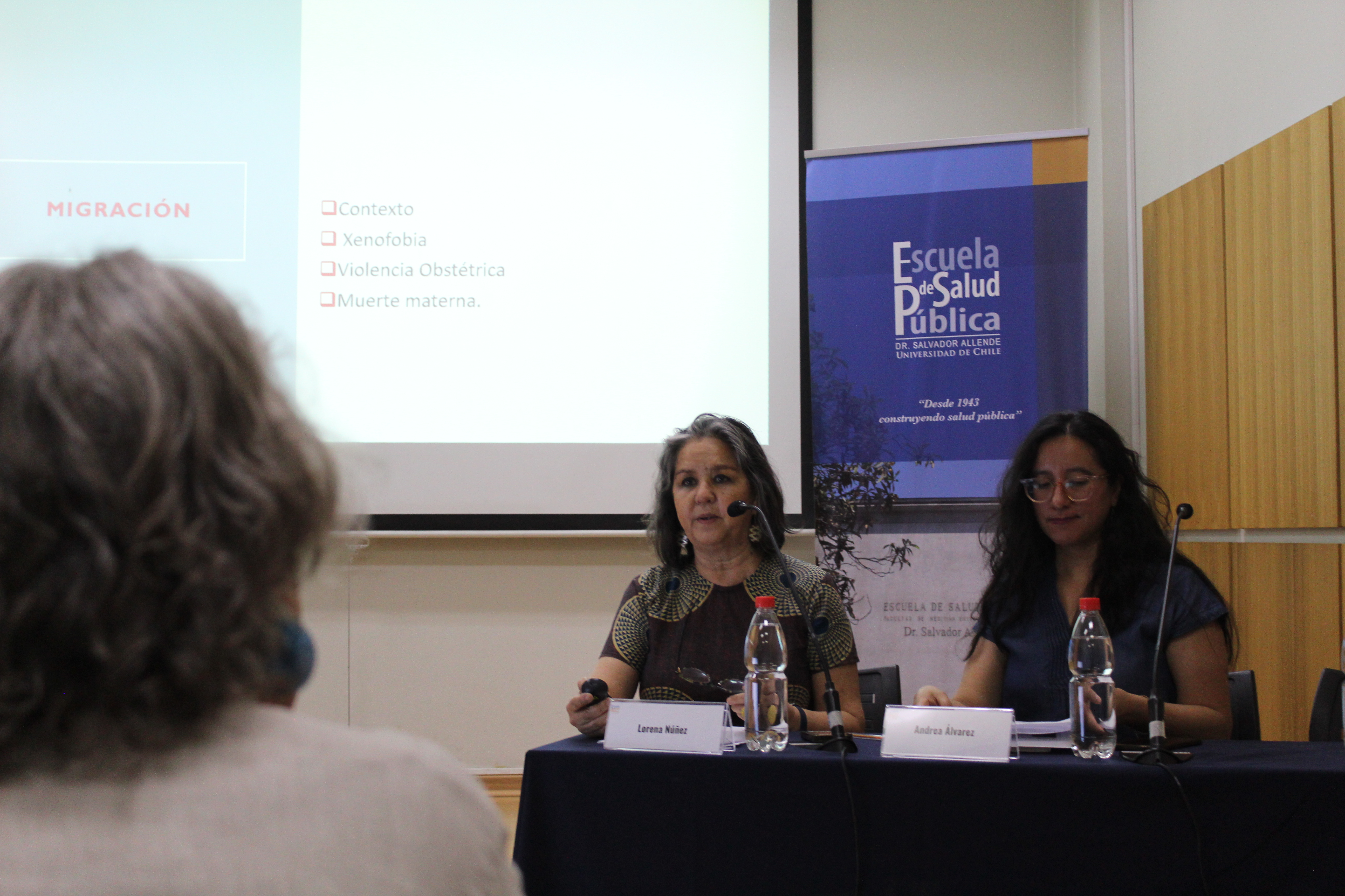 La presentación fue complementada por la académica de la Escuela de Salud Pública, Dra. Andrea Álvarez Carimoney, quien expuso los resultados de una investigación cualitativa desarrollada en el Servicio de Salud Metropolitano Central. “Nuestro objetivo fue indagar en cómo los equipos de salud reproductiva comprenden y abordan la atención de mujeres migrantes en gestación, utilizando entrevistas individuales y grupos focales con profesionales de distintos niveles de atención”, explicó.