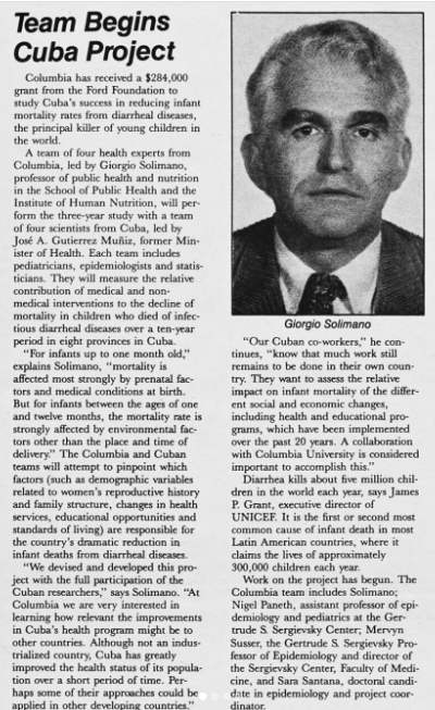 Al caer la década, Giorgio Solimano Cantuarias articuló su acceso a la Dirección de la Escuela de Salud Pública de la Facultad de Medicina de la Universidad de Chile y, una vez allí, me invitó a participar de su proyecto, lo que acepté de muy buena gana. De hecho, me Doctoré gracias a su convicción y apoyo.