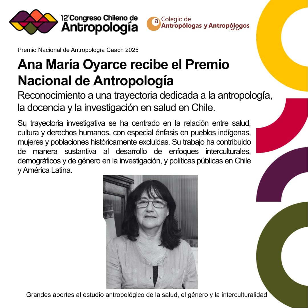 Ana María Oyarce, Doctora en antropología médica, ha situado su trabajo en la intersección entre salud pública, epidemiología e interculturalidad, combinando metodologías cualitativas y cuantitativas para visibilizar inequidades estructurales en salud. Ha sido consultora de organismos internacionales como CEPAL, OPS, UNFPA y CELADE, influyendo en agendas regionales de alto impacto como el Consenso de Montevideo sobre Población y Desarrollo.